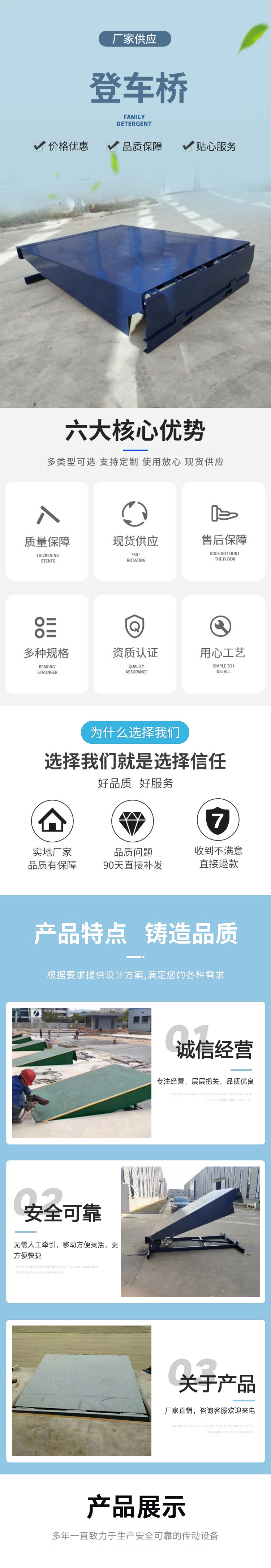 1、固定式登車橋電動液壓高度可任意調節 ,提高裝卸效率的液壓固定式登車橋,采用全液壓驅動,操作方便運行可靠。